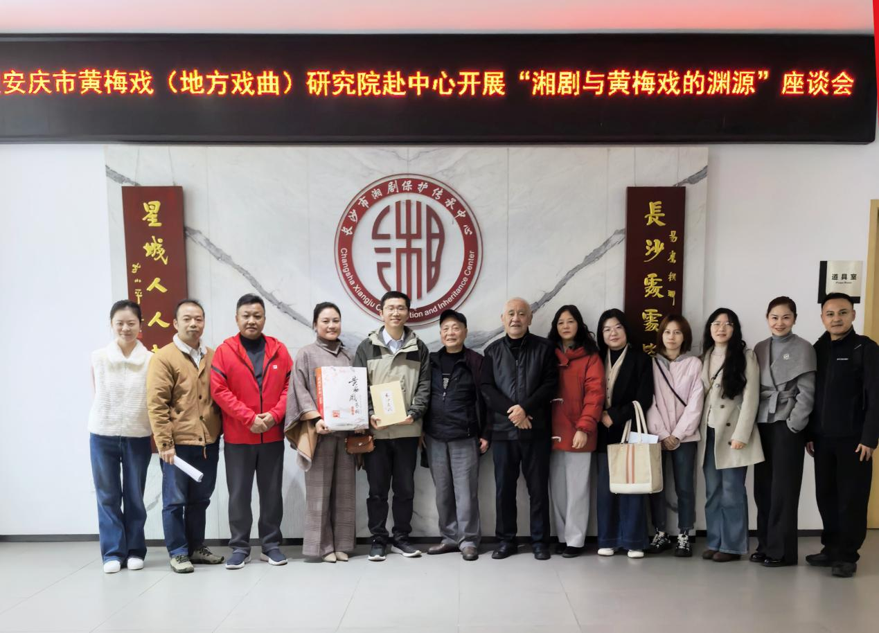 为促进跨区域戏曲文化交流,探索传统戏曲在当代的创新发展路径。11月17-20日,安庆市黄梅戏(地方戏曲)研究院负责人田鑫明、副院长程晓红,原《黄梅戏艺术》主编、一级编剧何成结,安庆师范大学黄梅剧艺术学院欧阳梦霞博士等一行6人,赴湖南、江西两省开展“黄梅戏与湘剧剧种渊源”、“黄梅戏与赣剧剧种渊源”调研活动。通过实地观摩、学术研讨与艺术家对话,探寻不同剧种间的艺术共性与独特魅力。